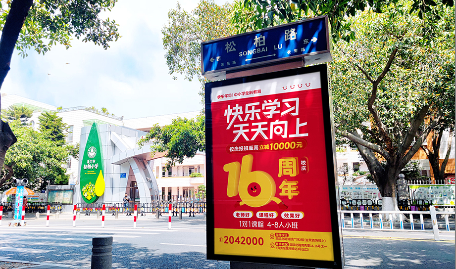 快樂學習全城多個黃金路段投放,覆蓋廈門各大中小學周邊路段及交叉口,定位精準人群,點對點投放。